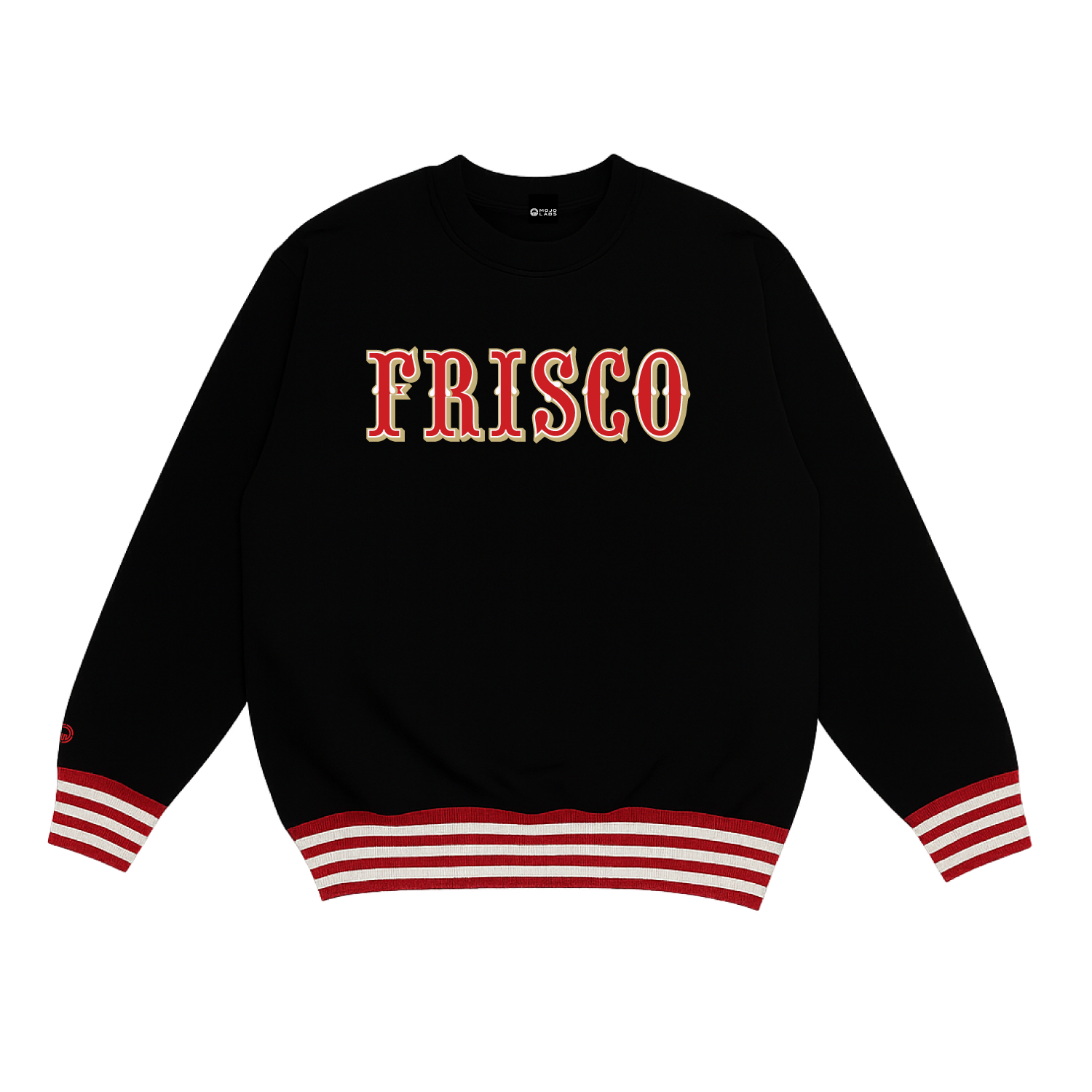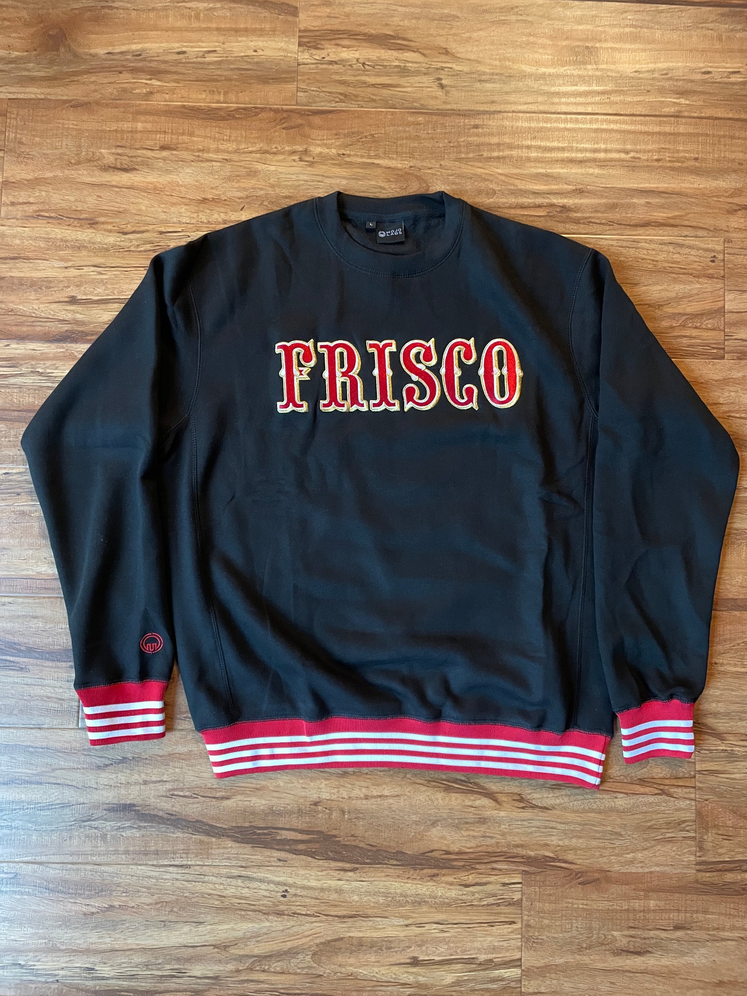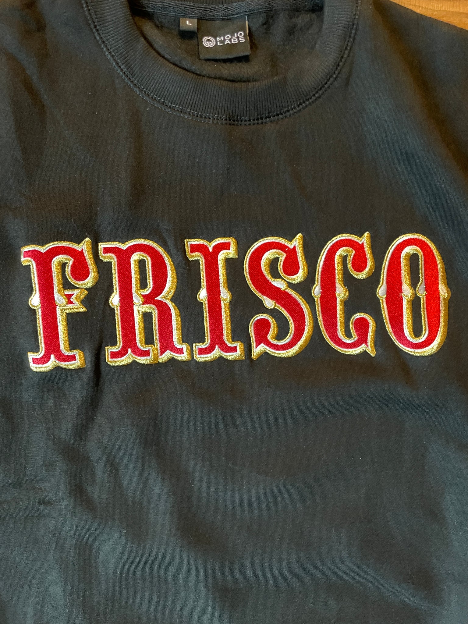 Embroidered front FRISCO, with embroidered MOJO icon on right wrist.